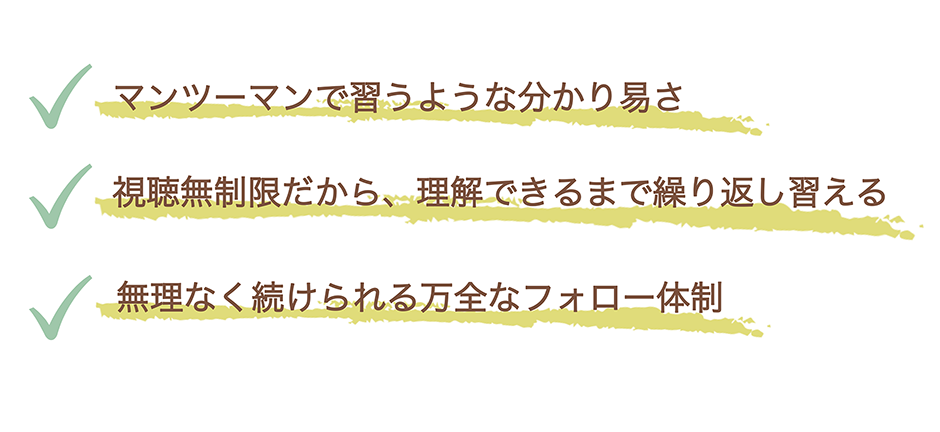 - 不明点や疑問点はいつでも、期限に限りなくメールやLINEなどでいつでも質問可能!